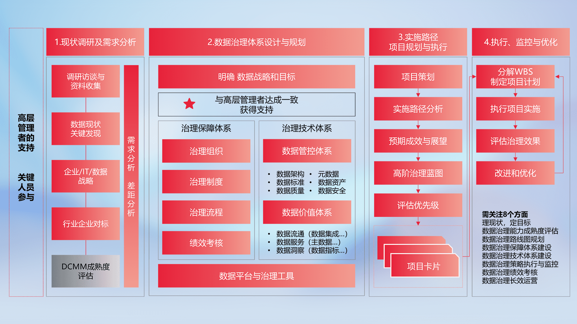 制定并执行统一的数据标准,,规范数据定义和格式,,,消除冗余和不一致性,,,实现跨部门和跨系统的数据一致性,,为企业提供标准化的数据基础。。